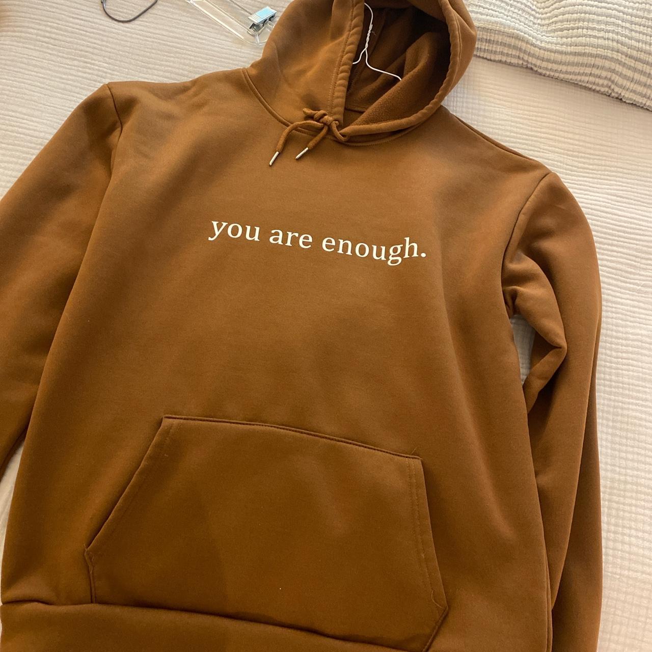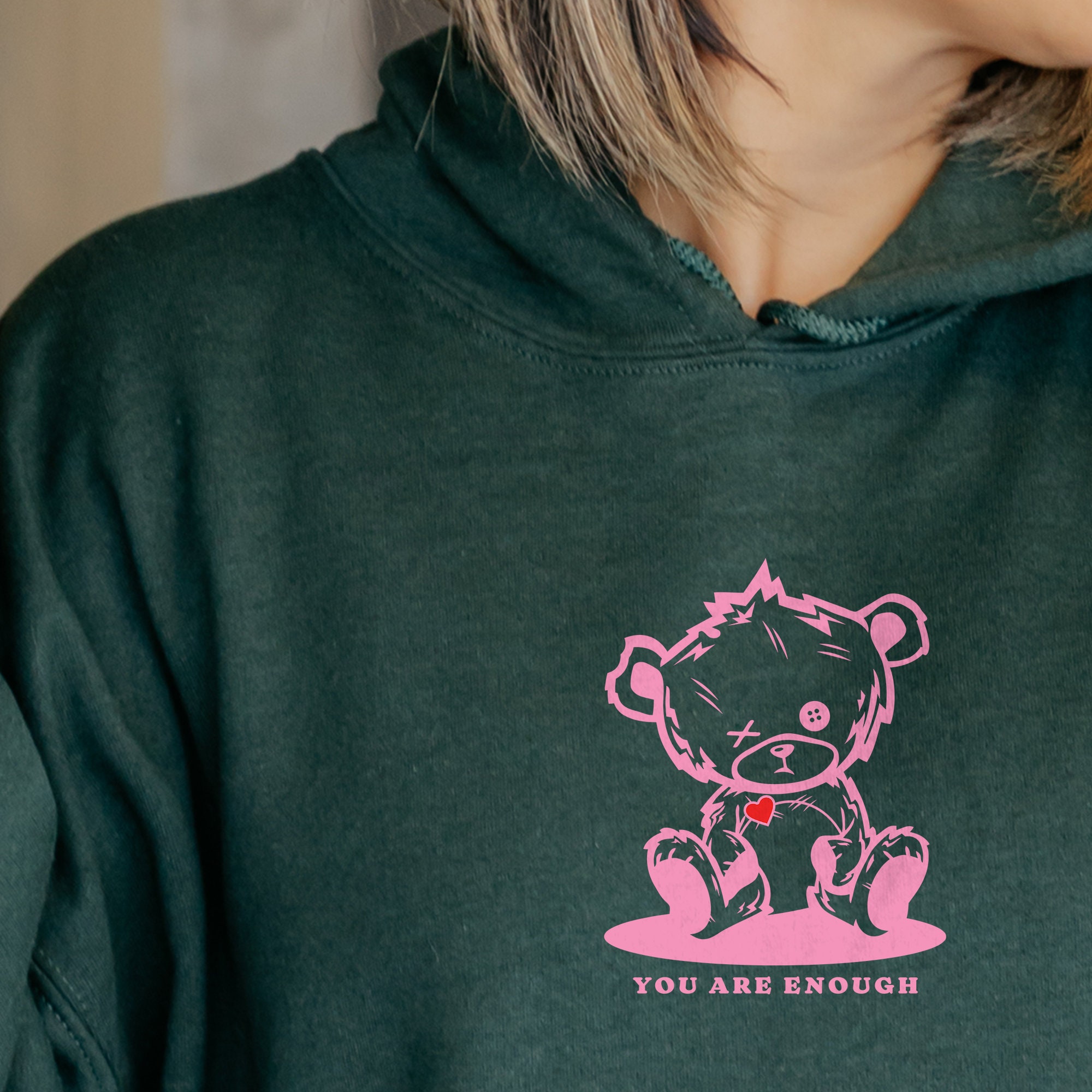 You Are Enough Hoodie For Unisex. Regular fit, pullover hood, inset sleeves, kangaroo pocket 100% of proceeds donated to mental health awareness & research